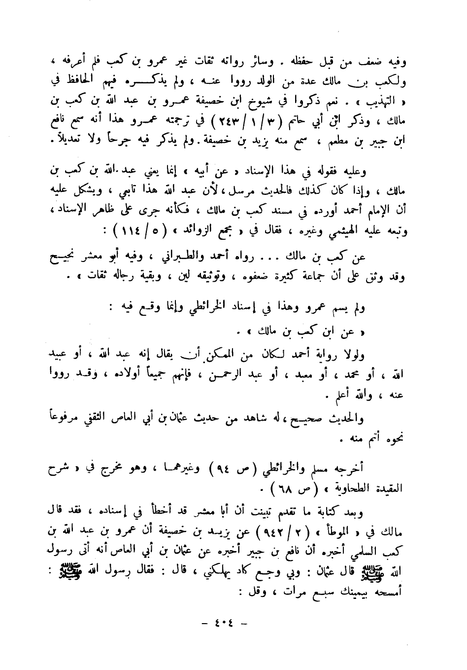 ". ولم يسم عمرو وهذا في إسناد الخرائطي وإنما وقع فيه: " عن ابن كعب ابن