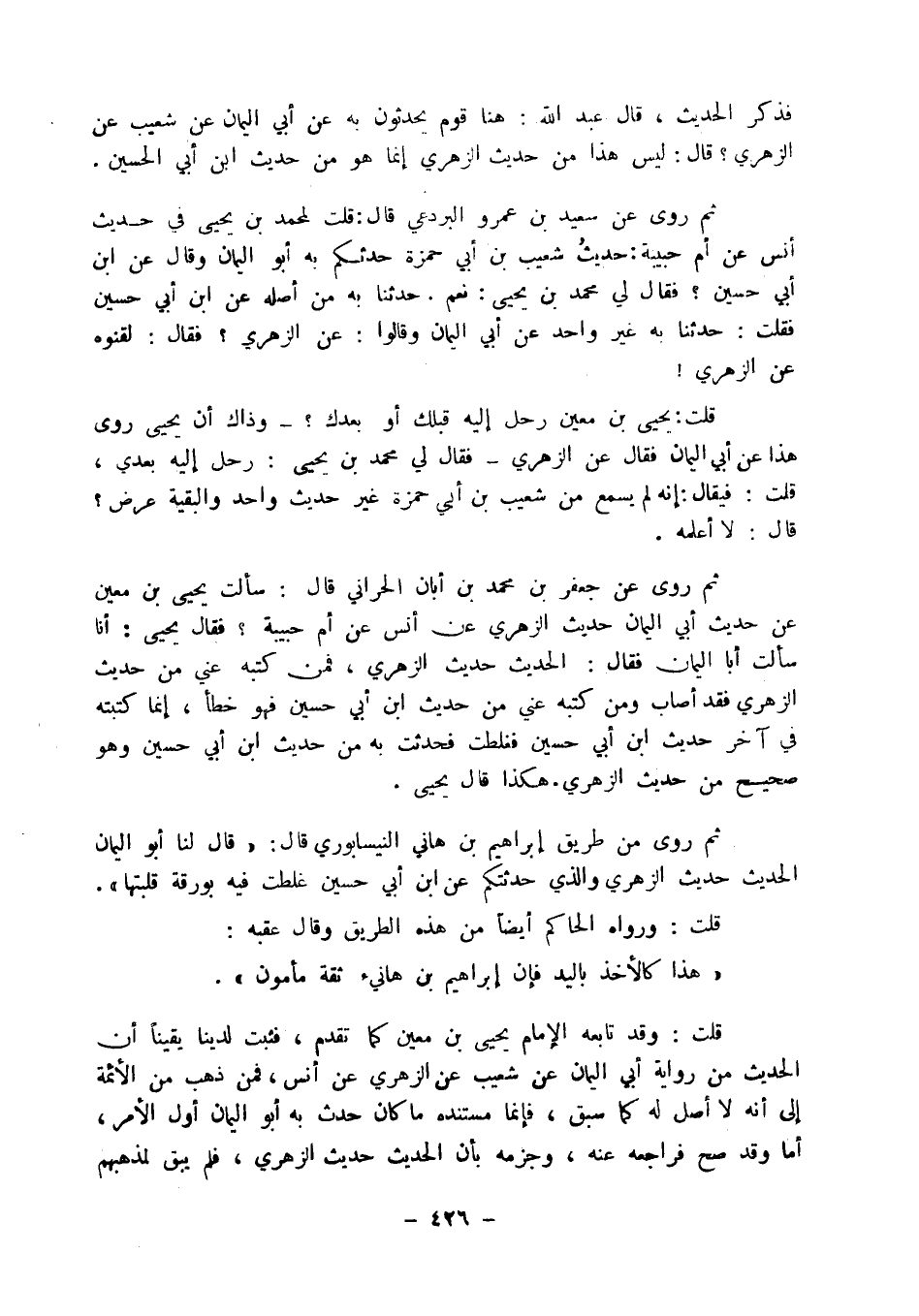 البردعي قال قلت لمحمد بن يحيى في حديث أنس عن أم حبيبة حديث شعيب بن أبي حمزة
