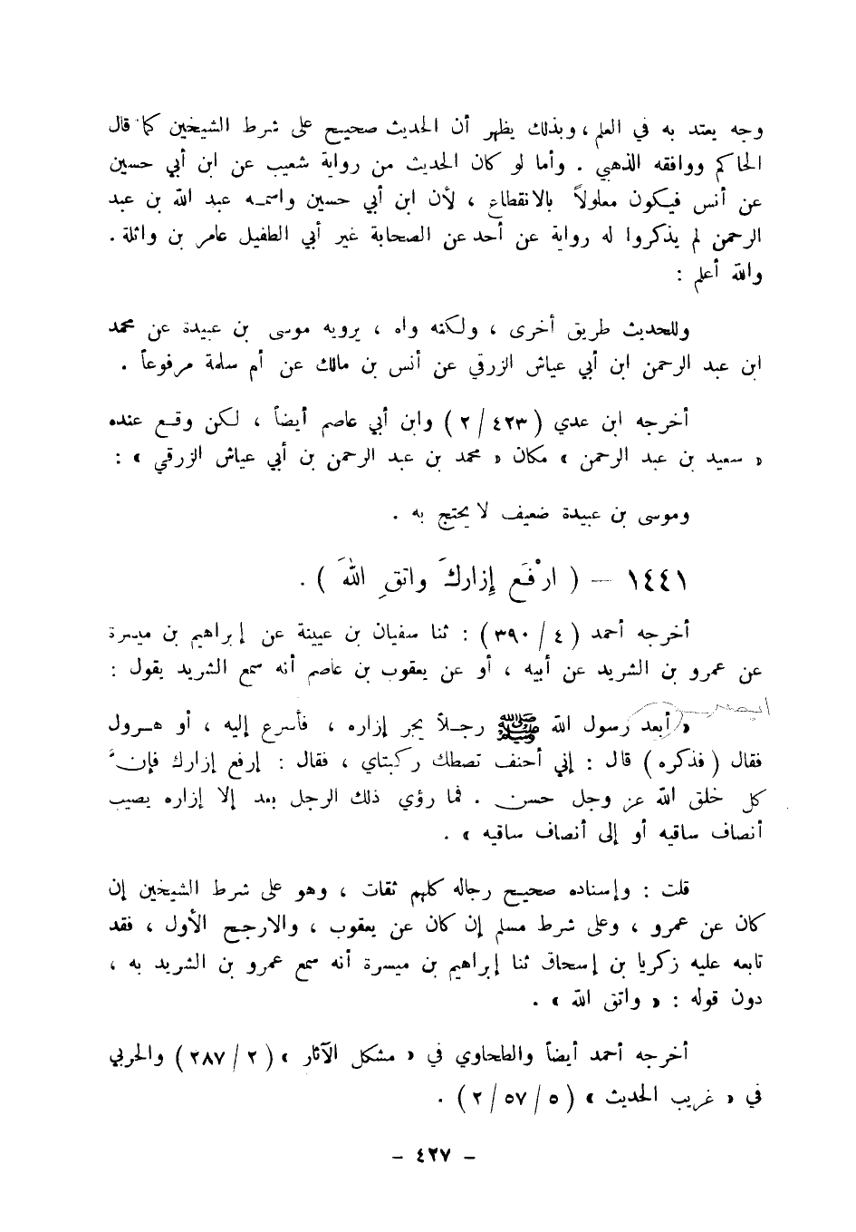 الله صلى الله عليه وسلم رجلا يجر إزاره، فأسرع إليه، أو هرول فقال (فذكره)
