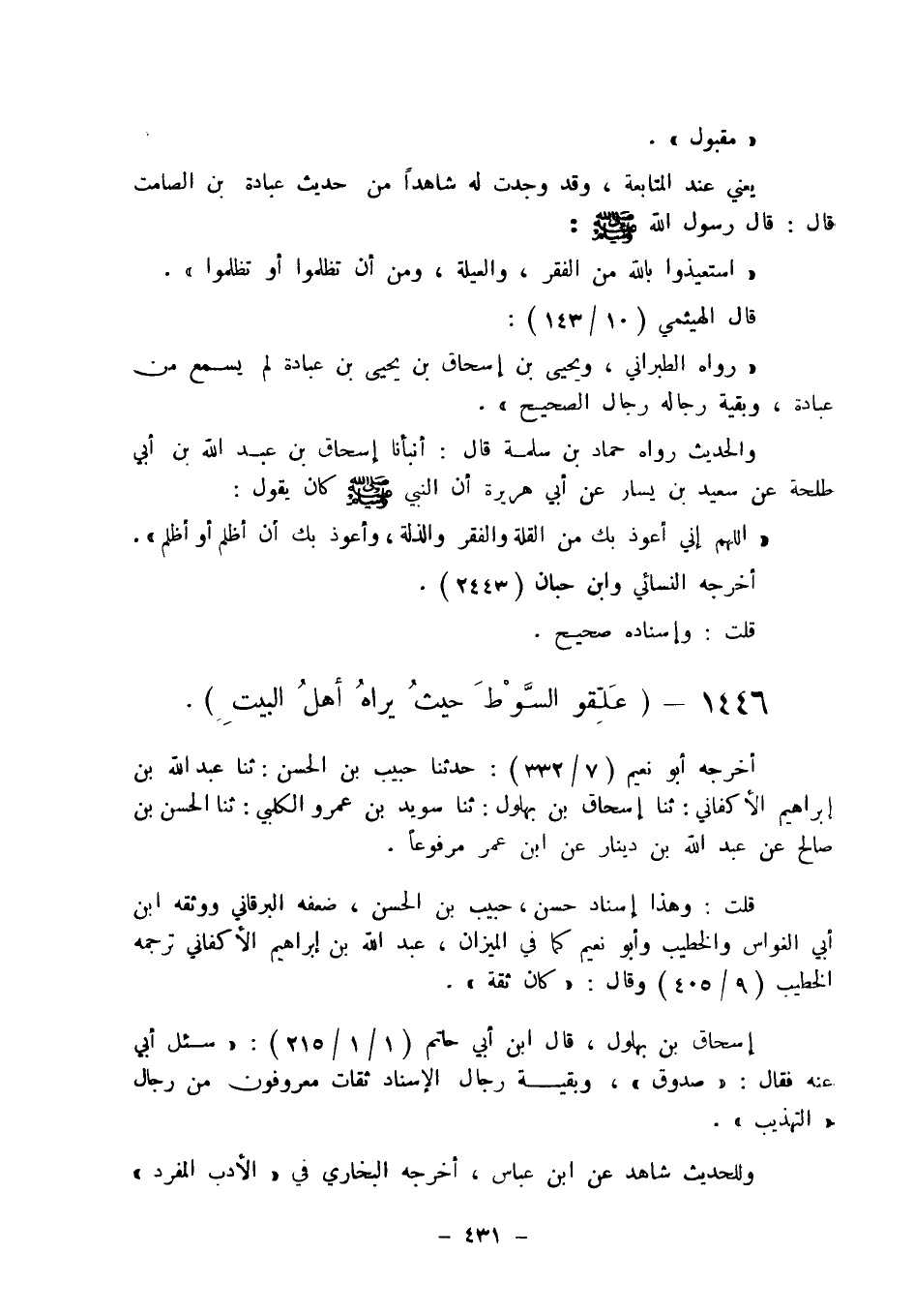 الخطيب (9 / 405) وقال: " كان ثقة ". إسحاق بن بهلول، قال ابن أبي حاتم