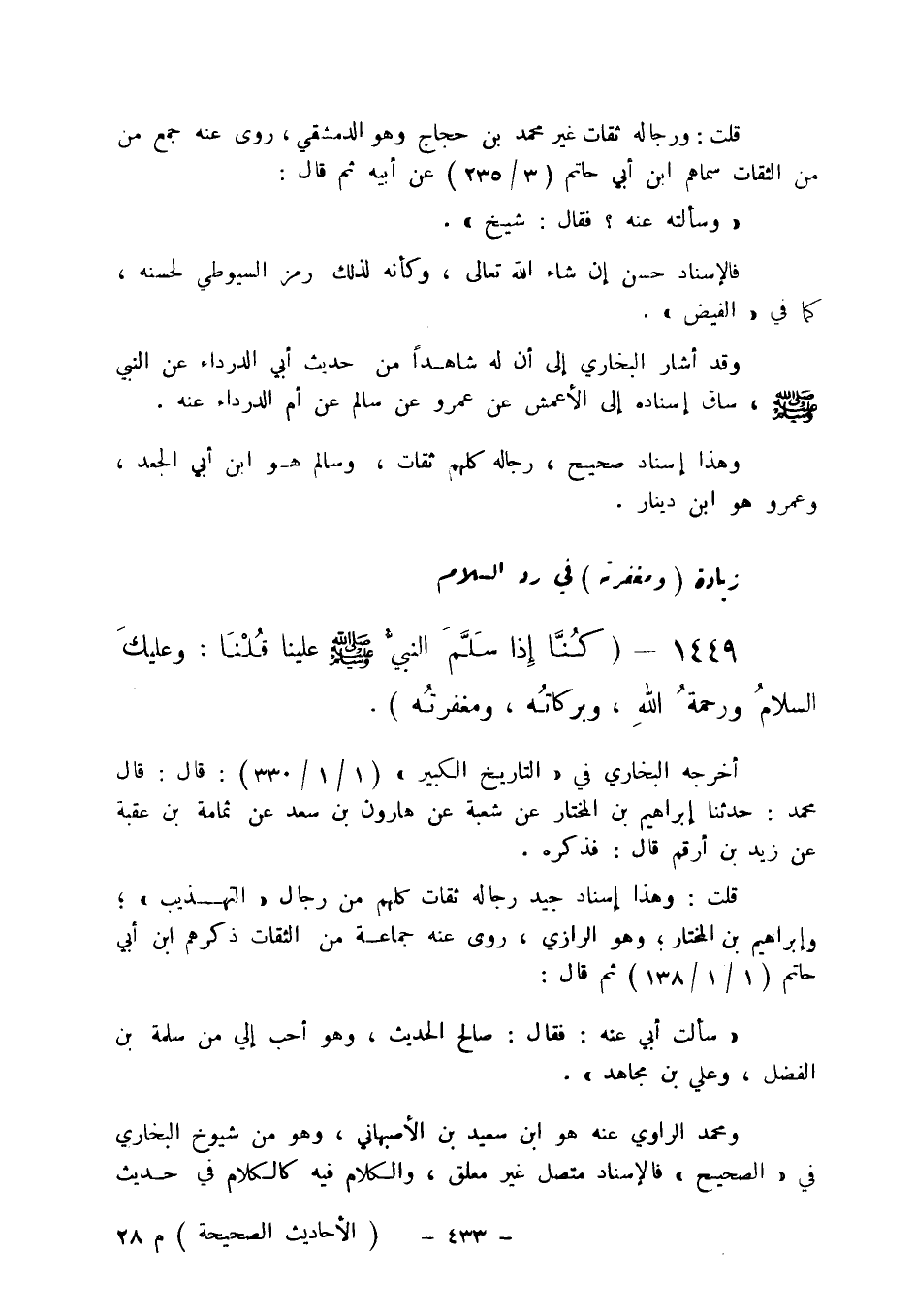 1449 - " كنا إذا سلم النبي صلى الله عليه وسلم علينا قلنا: وعليك السلام ورحمة