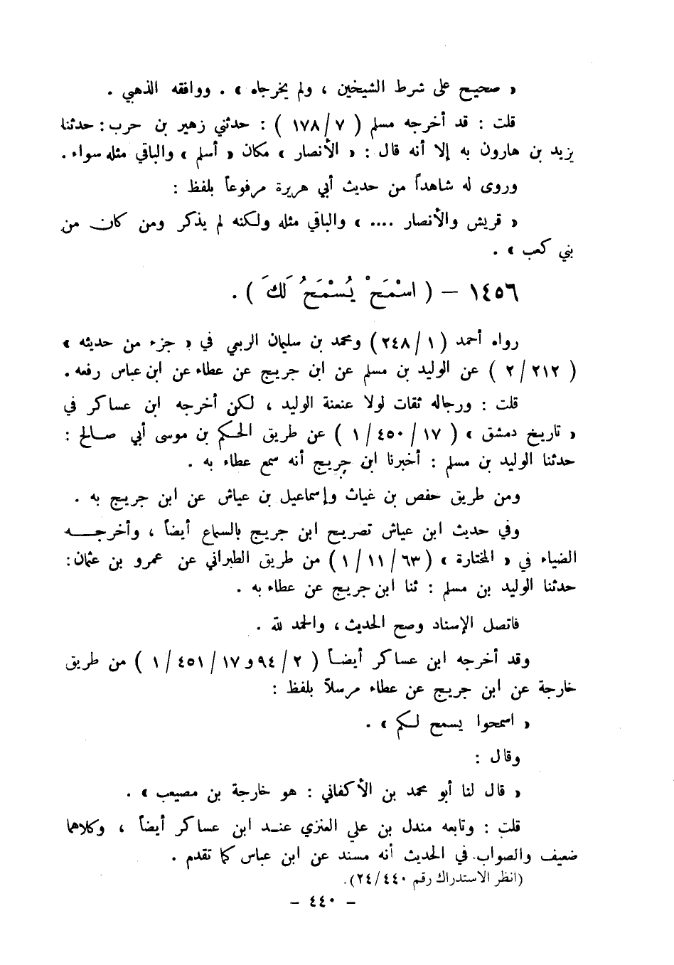 ابن مسلم حدثنا ابن جريج عن عطاء به. فاتصل الإسناد وصح الحديث، والحمد لله