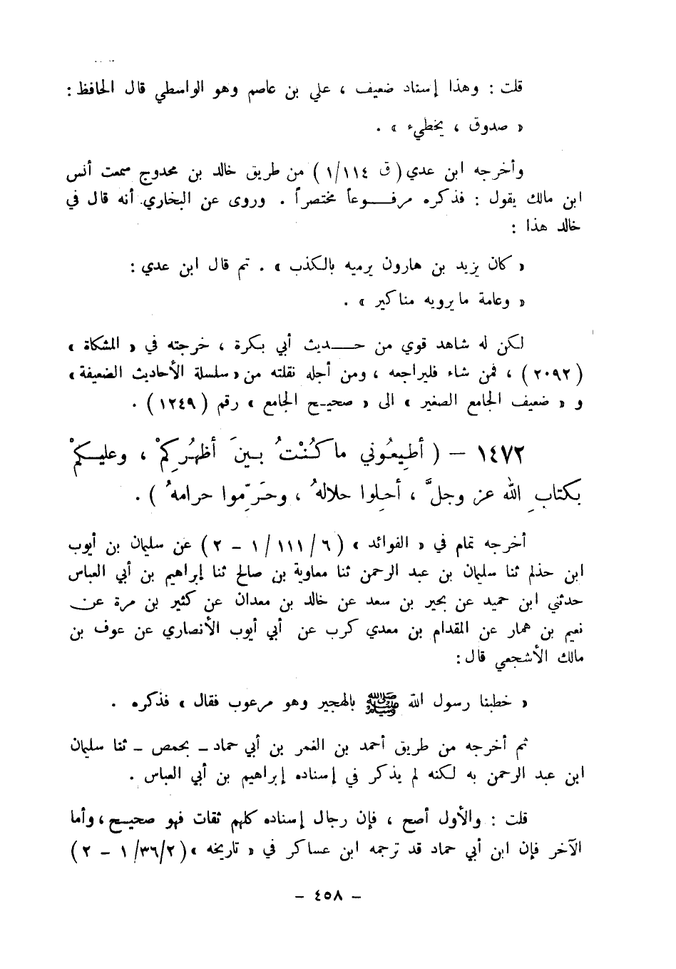 1472 - " أطيعوني ما كنت بين أظهركم وعليكم بكتاب الله عز وجل، أحلوا حلاله وحرموا