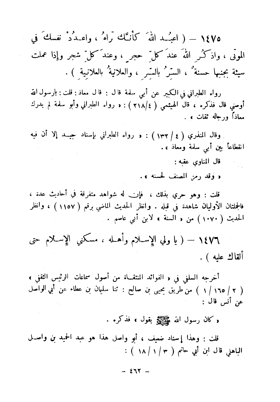 1475 - " اعبد الله كأنك تراه واعدد نفسك في الموتى واذكر الله عند كل حجر وعند كل