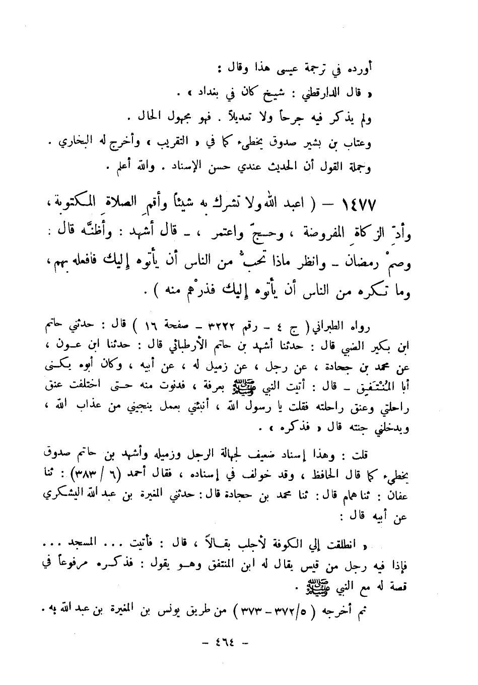 1477 - " اعبد الله ولا تشرك به شيئا وأقم الصلاة المكتوبة وأد الزكاة المفروضة
