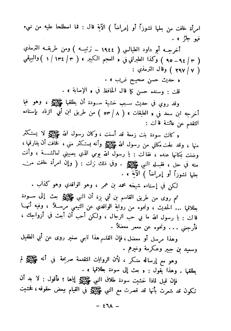 سودة أن يطلقها صلى الله عليه وسلم، وهو فيما أخرجه ابن سعد في " الطبقات "