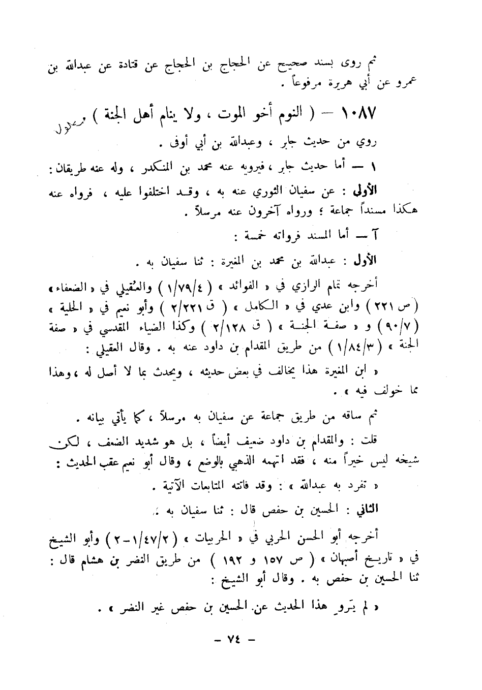 1087 - " النوم أخو الموت ولا ينام أهل الجنة ".