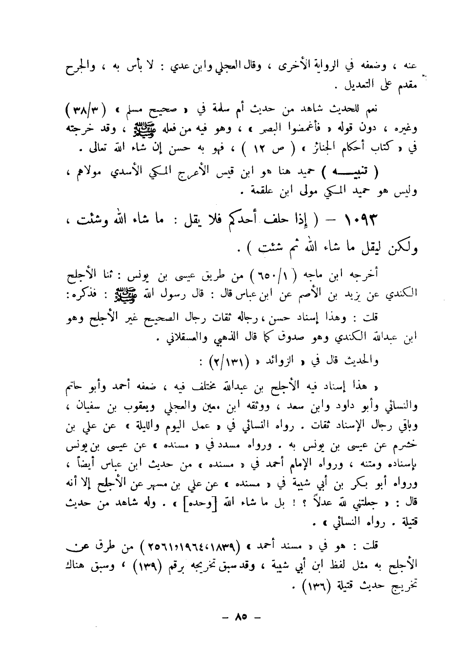 131 / 2) : " هذا إسناد فيه الأجلح بن عبد الله مختلف فيه، ضعفه أحمد وأبو