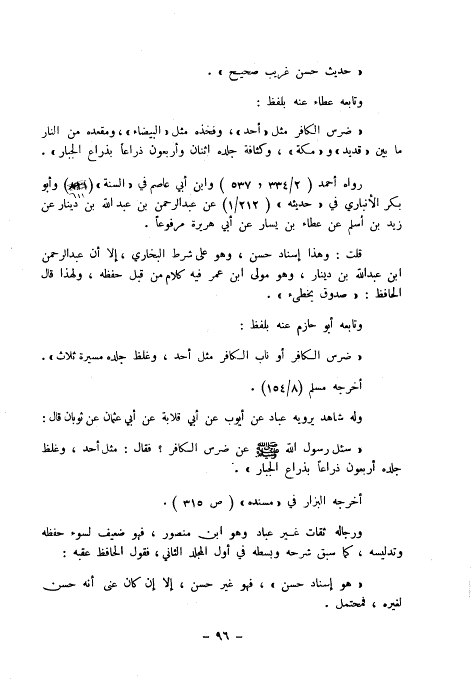 " حديث حسن غريب صحيح ". وتابعه عطاء عنه بلفظ: " ضرس الكافر مثل " أحد "