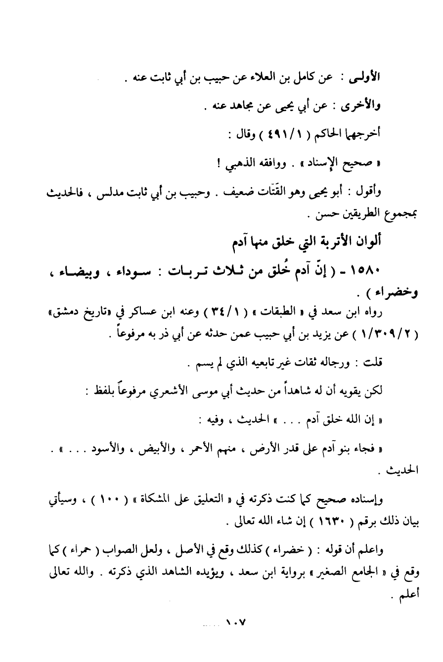 1580 - " إن آدم خلق من ثلاث ترابات سوداء وبيضاء وخضراء ".