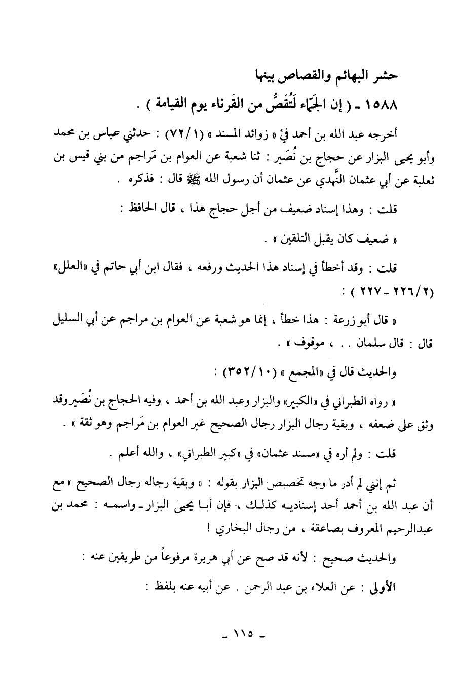 1588 - " إن الجماء لتقص من القرناء يوم القيامة ".