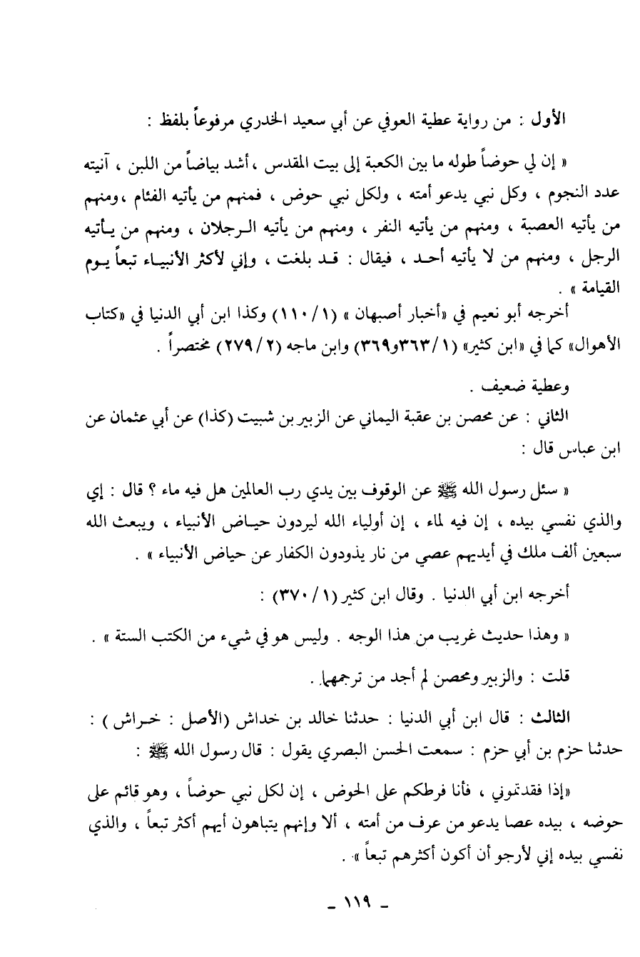 الأول: من رواية عطية العوفي عن أبي سيد الخدري مرفوعا بلفظ: " إن لي حوضا