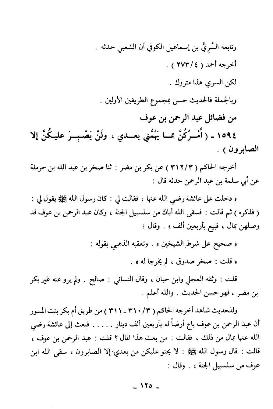 310 - 311) من طريق أم بكر بنت المسور أن عبد الرحمن بن عوف باع أرض له