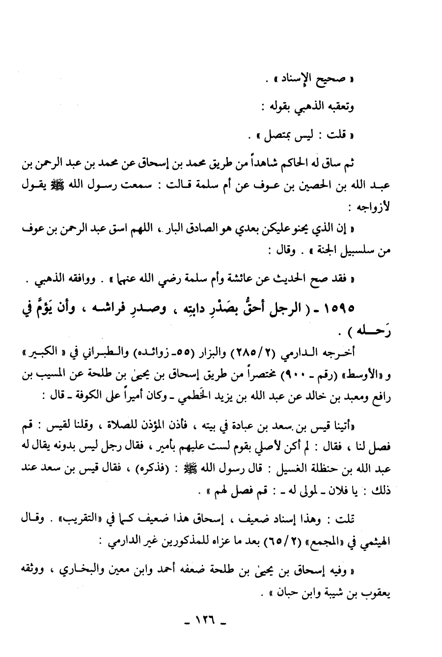 1595 - " الرجل أحق بصدر دابته وصدر فراشه وأن يؤم في رحله ".