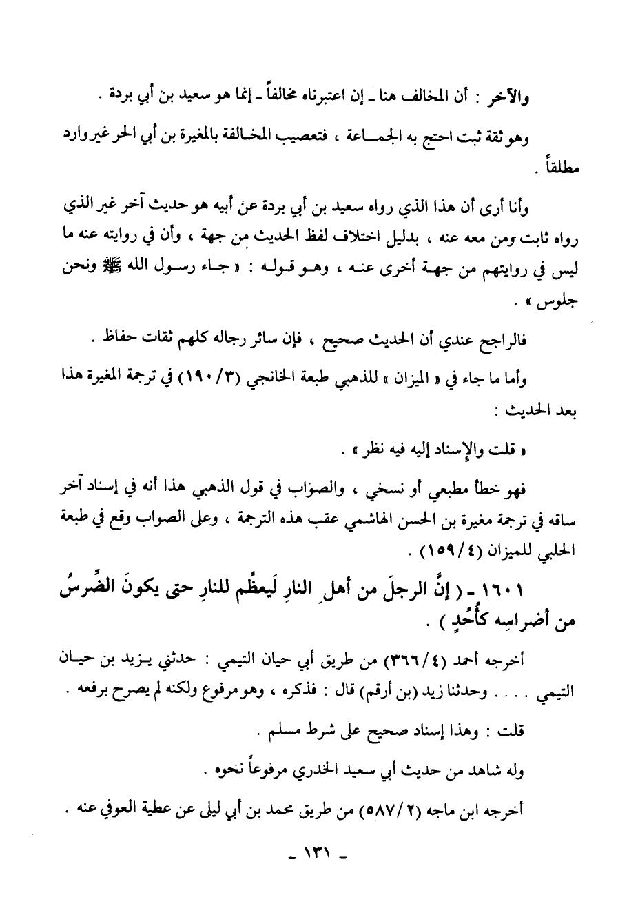 1601 - " إن الرجل من أهل النار ليعظم للنار حتى يكون الضرس من أضراسه كأحد ".