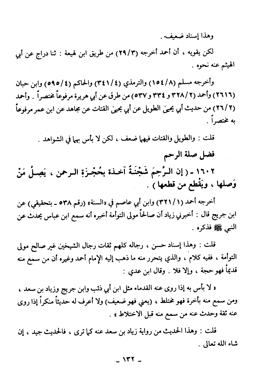 1602 - " إن الرحم شجنة آخذة بحجزة الرحمن، يصل من وصلها ويقطع من قطعها ".