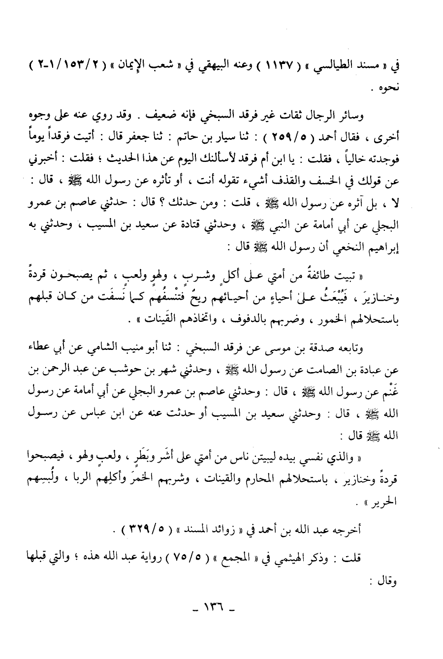 قلت: وذكر الهيثمي في " المجمع " (5 / 75) رواية عبد الله هذه، والتي