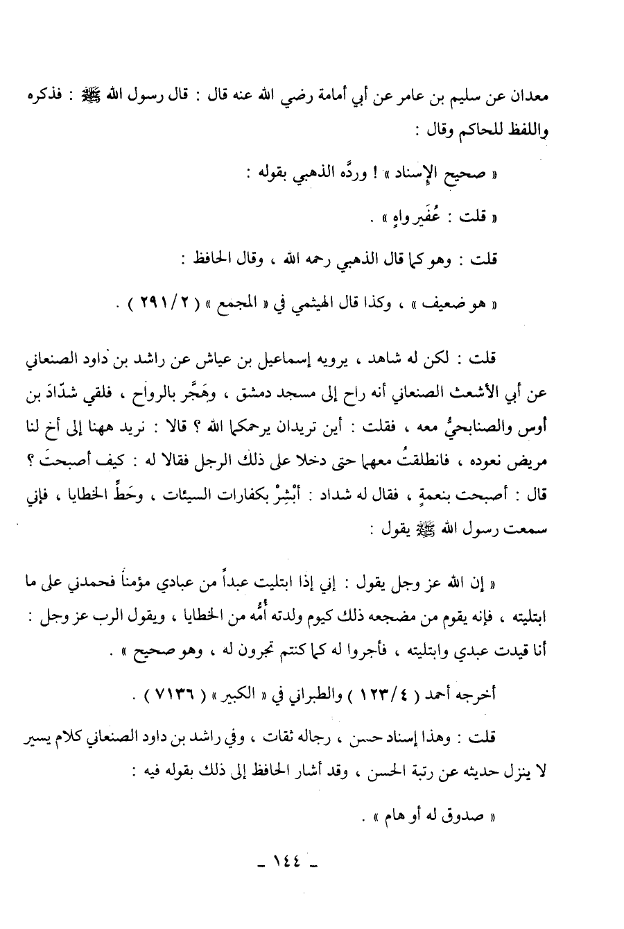 قلت: وهذا إسناد حسن، رجاله ثقات، وفي راشد بن داود الصنعاني كلام يسير لا