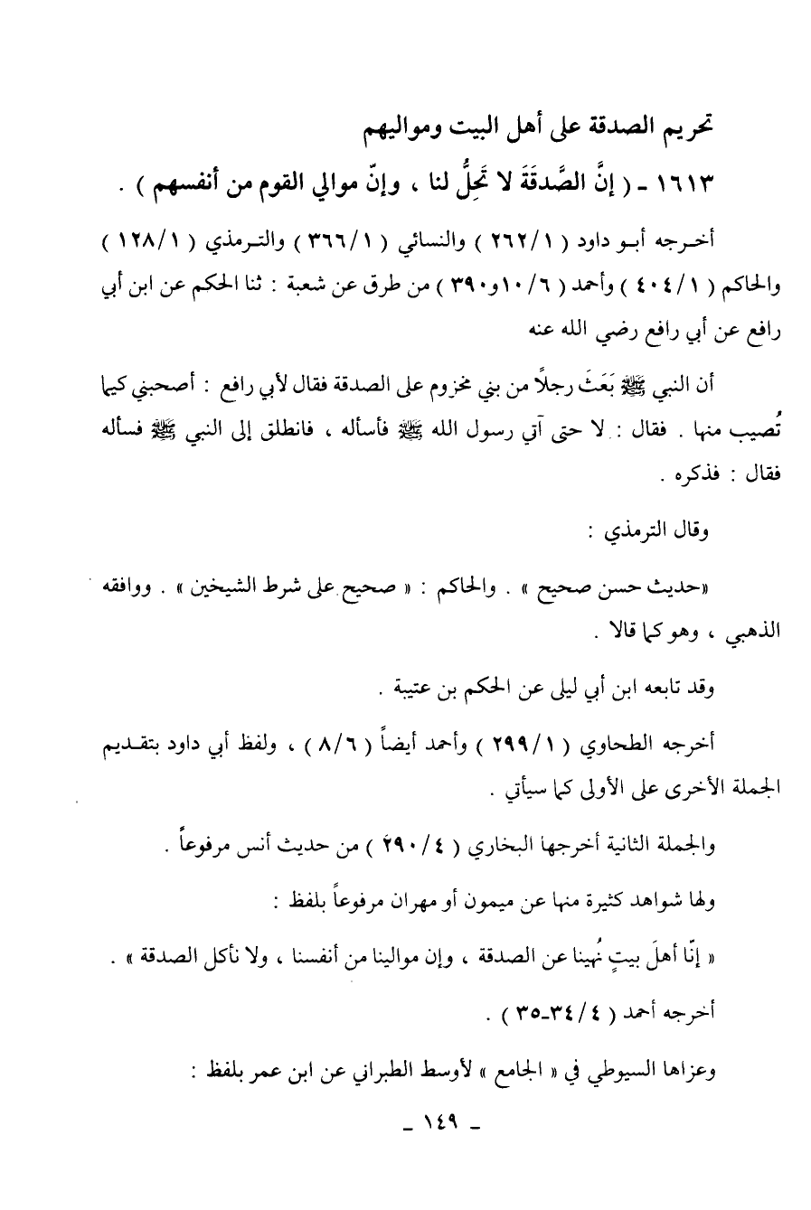 1613 - " إن الصدقة لا تحل لنا، وإن موالي القوم من أنفسهم ".