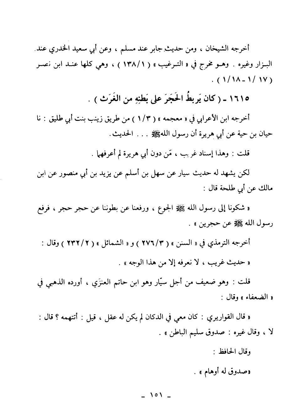 1615 - " كان يربط الحجر على بطنه من الغرث ".