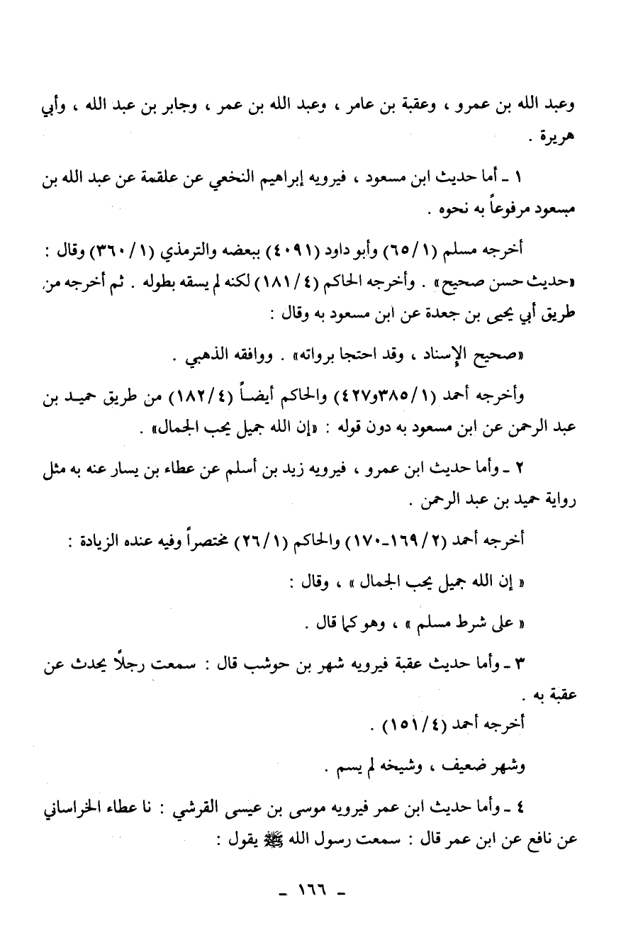 مسعود به دون قوله: " إن الله جميل يحب الجمال ".