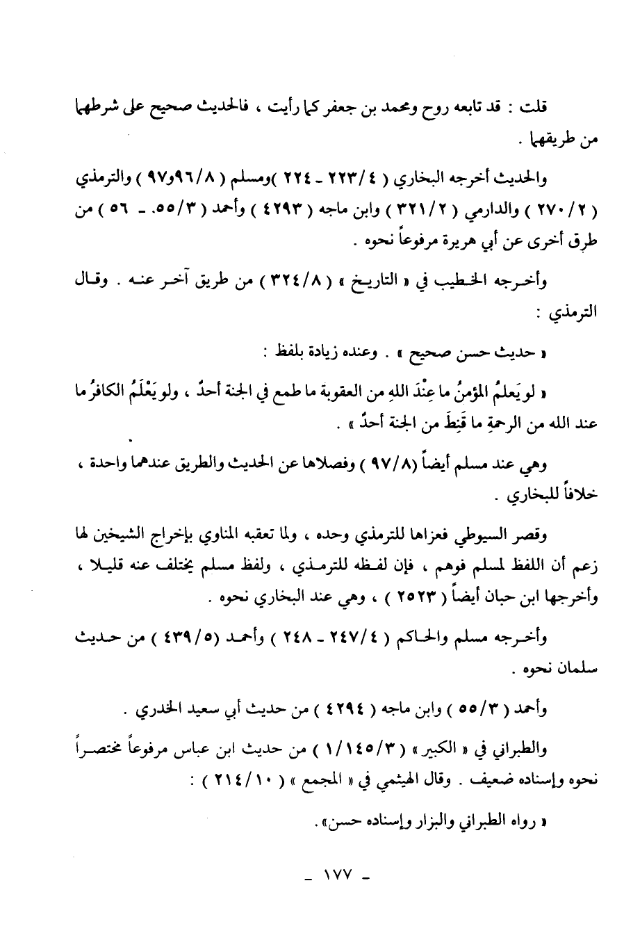 ولو يعلم الكافر ما عند الله من الرحمة ما قنط من الجنة أحد ". وهي عند مسلم