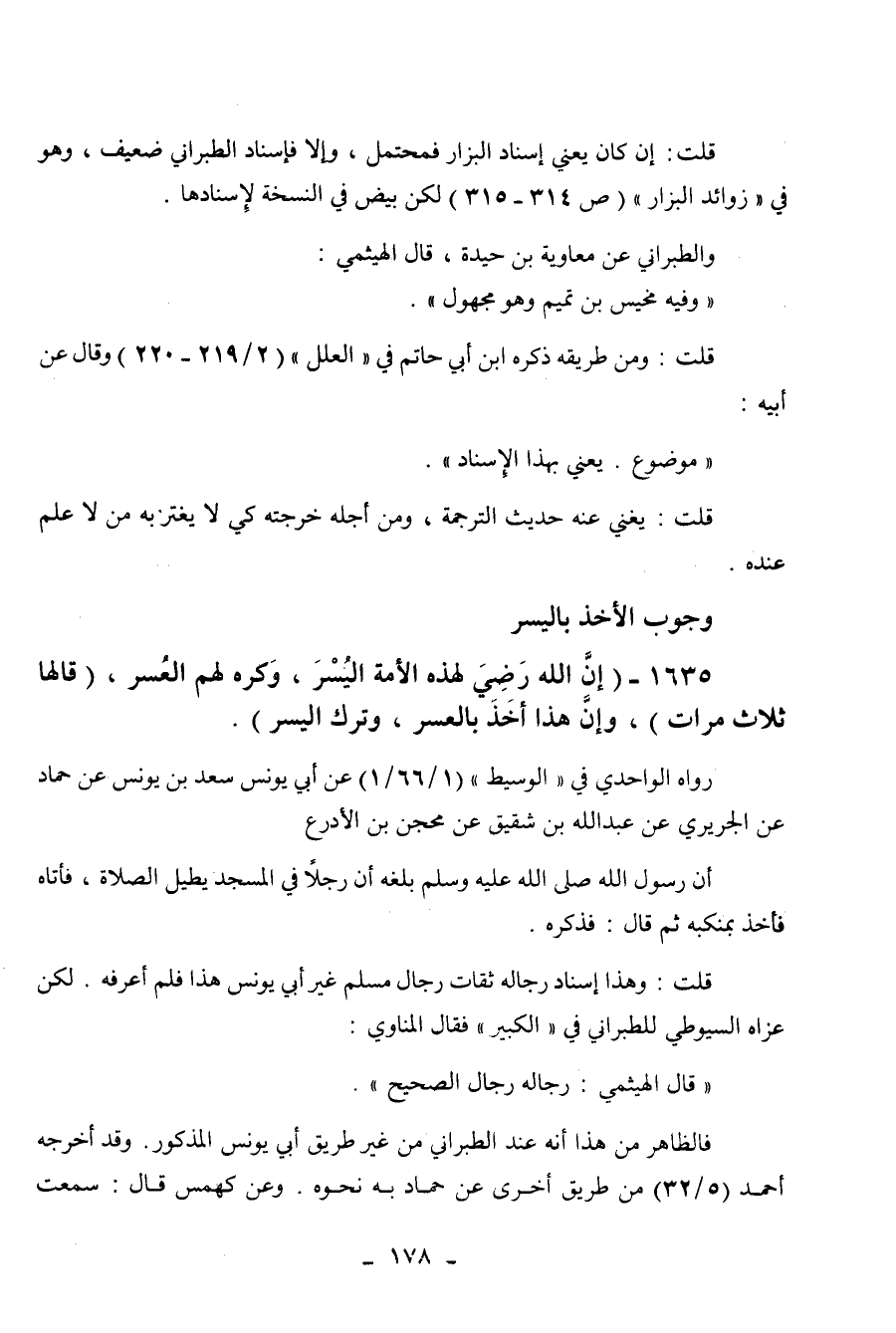 1635 - " إن الله رضي لهذه الأمة اليسر وكره لهم العسر، (قالها ثلاث مرات) وإن
