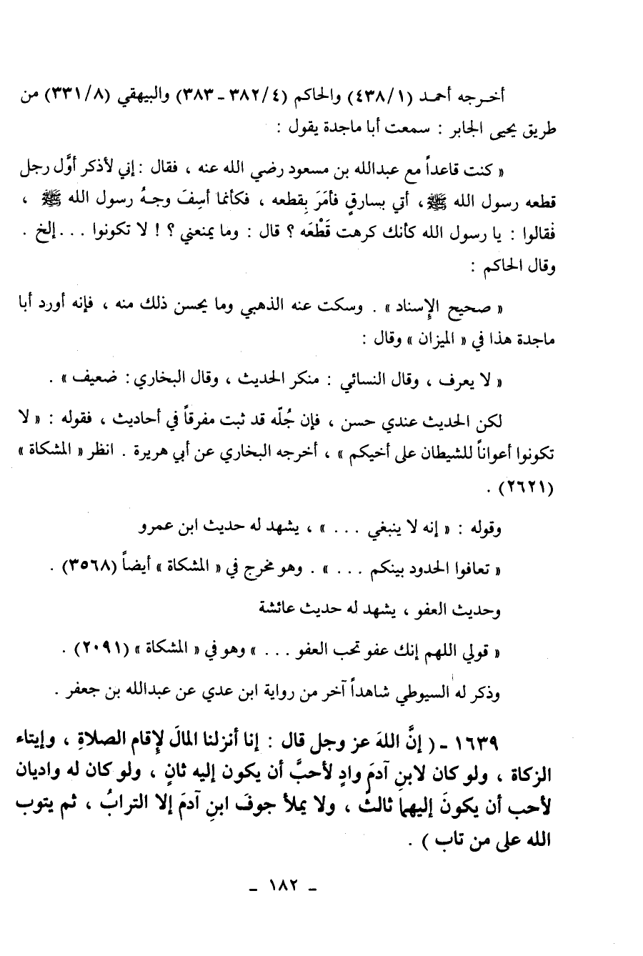 1639 - " إن الله عز وجل قال: إنا أنزلنا المال لإقام الصلاة وإيتاء الزكاة ولو كان