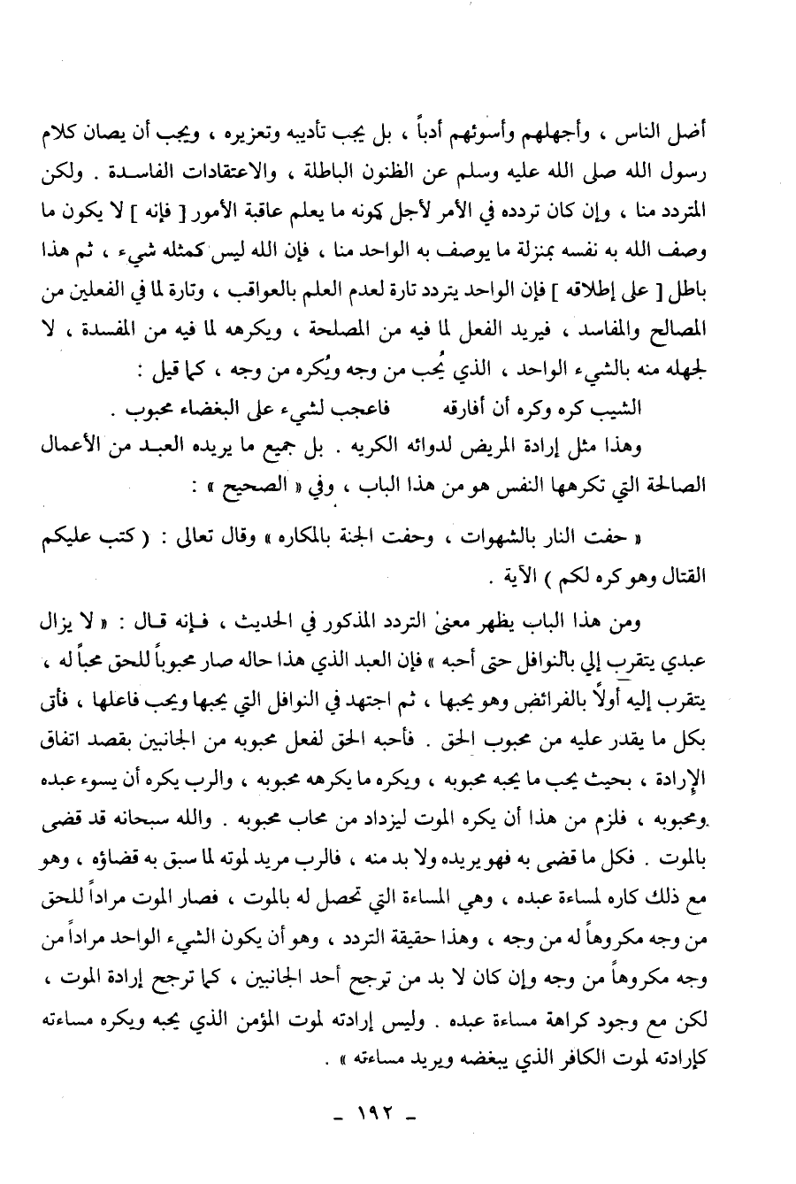 مرادا للحق من وجه مكروها له من وجه، وهذا حقيقة التردد، وهو أن يكون الشيء