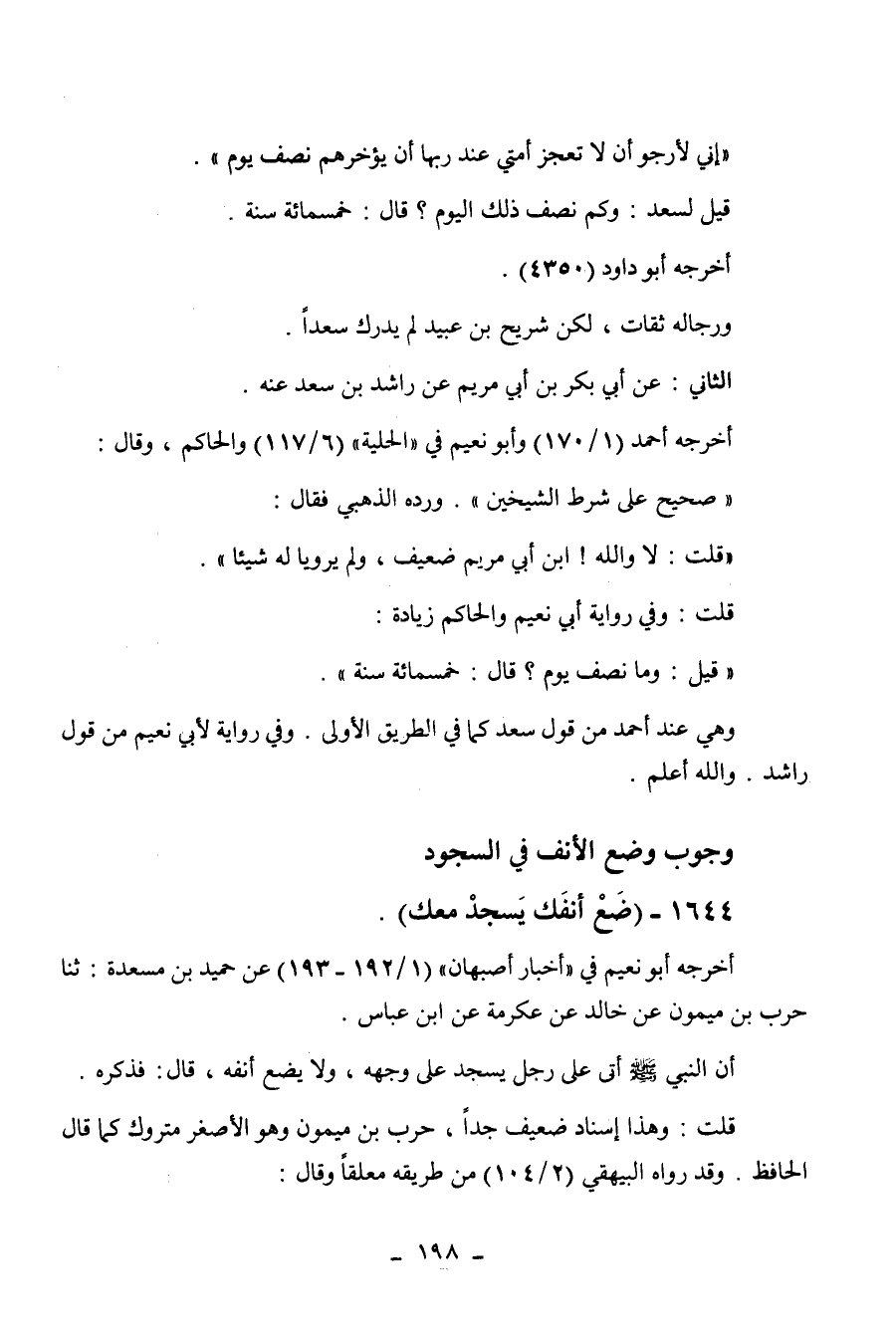 يؤخرهم نصف يوم ". قيل لسعد: وكم نصف ذلك اليوم؟ قال خمسمائة سنة. أخرجه