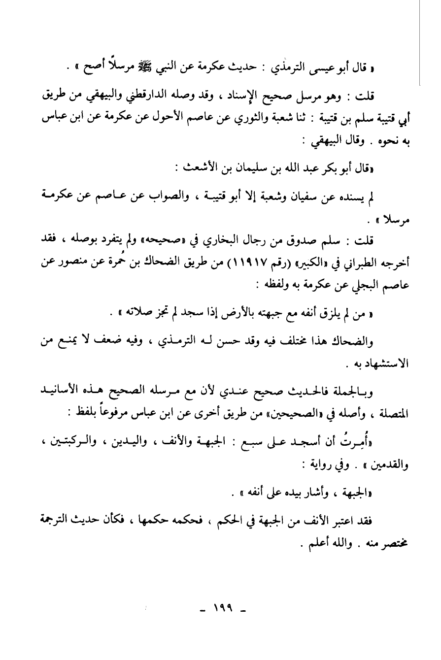 البجلي عن عكرمة به ولفظه: " من لم يزق أنفه مع جبهته بالأرض إذا سجد لم تجز