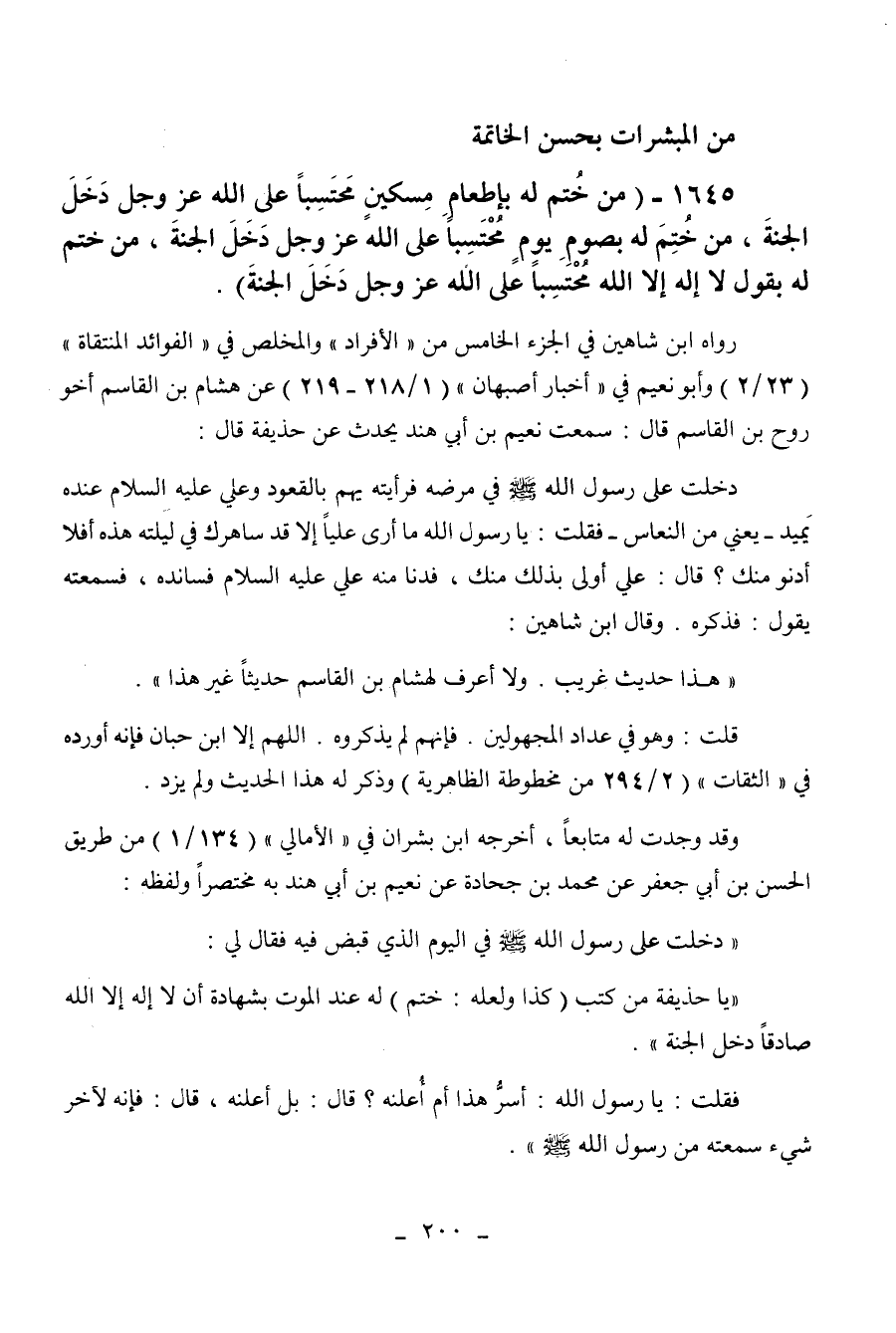" يا حذيفة من كتب (كذا ولعله: ختم) له عند الموت بشهادة أن لا إله إلا
