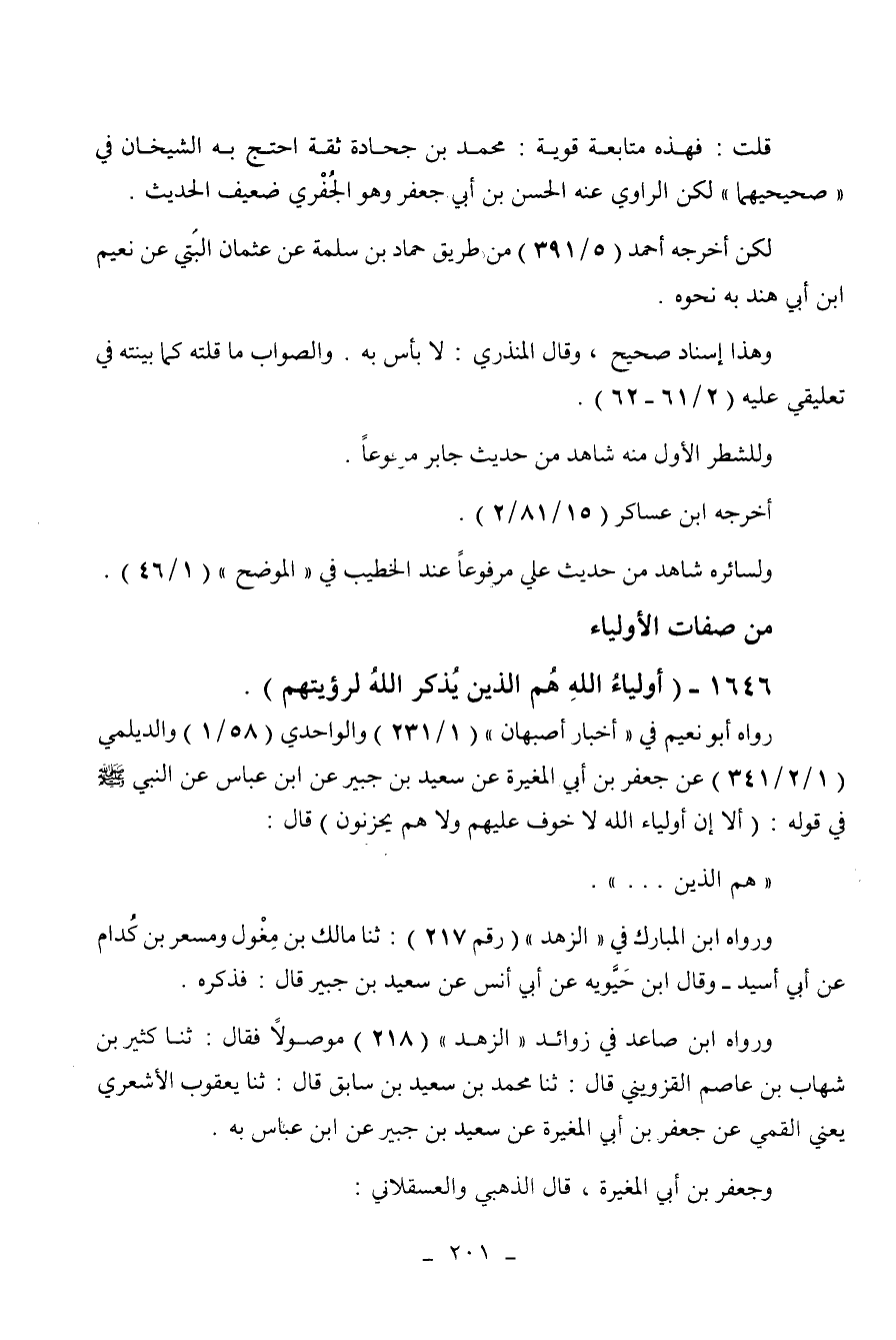 1646 - " أولياء الله هم الذين يذكر الله لرؤيتهم ".
