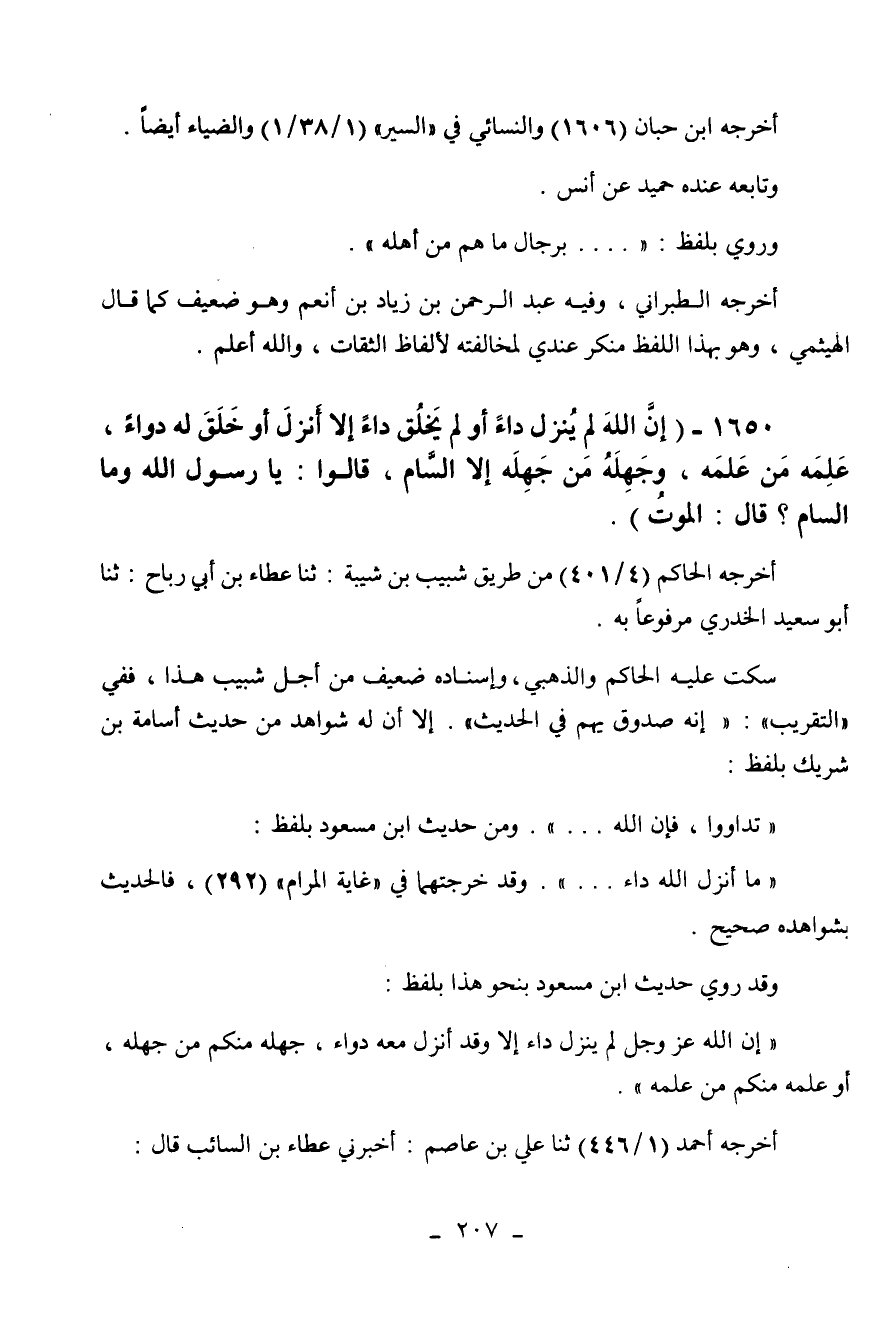 1650 - " إن الله لم ينزل داء أو لم يخلق داء إلا أنزل أو خلق له دواء، علمه من علمه