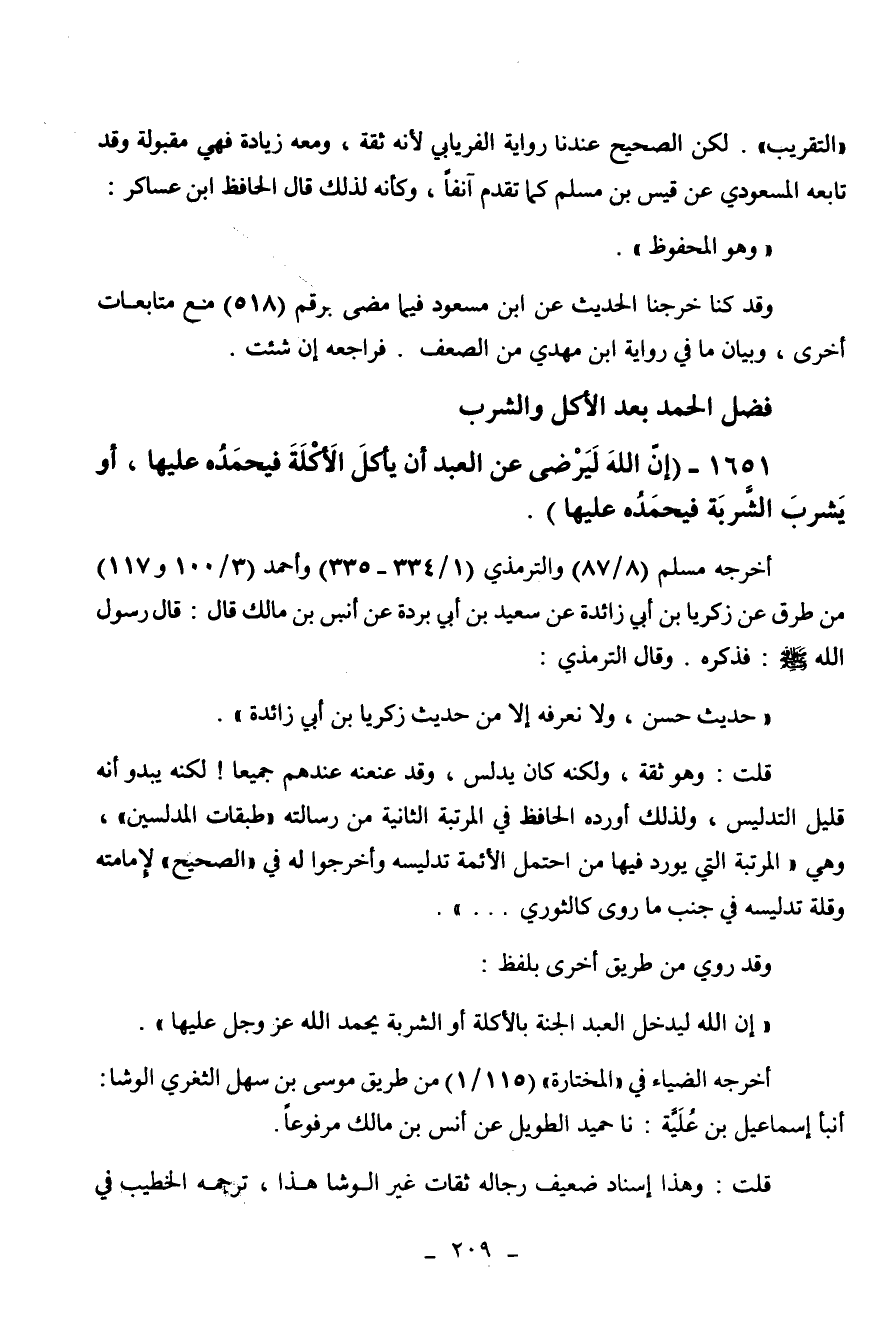 1651 - " إن الله ليرضى عن العبد أن يأكل الأكلة فيحمده عليها، أو يشرب الشربة فيحمده
