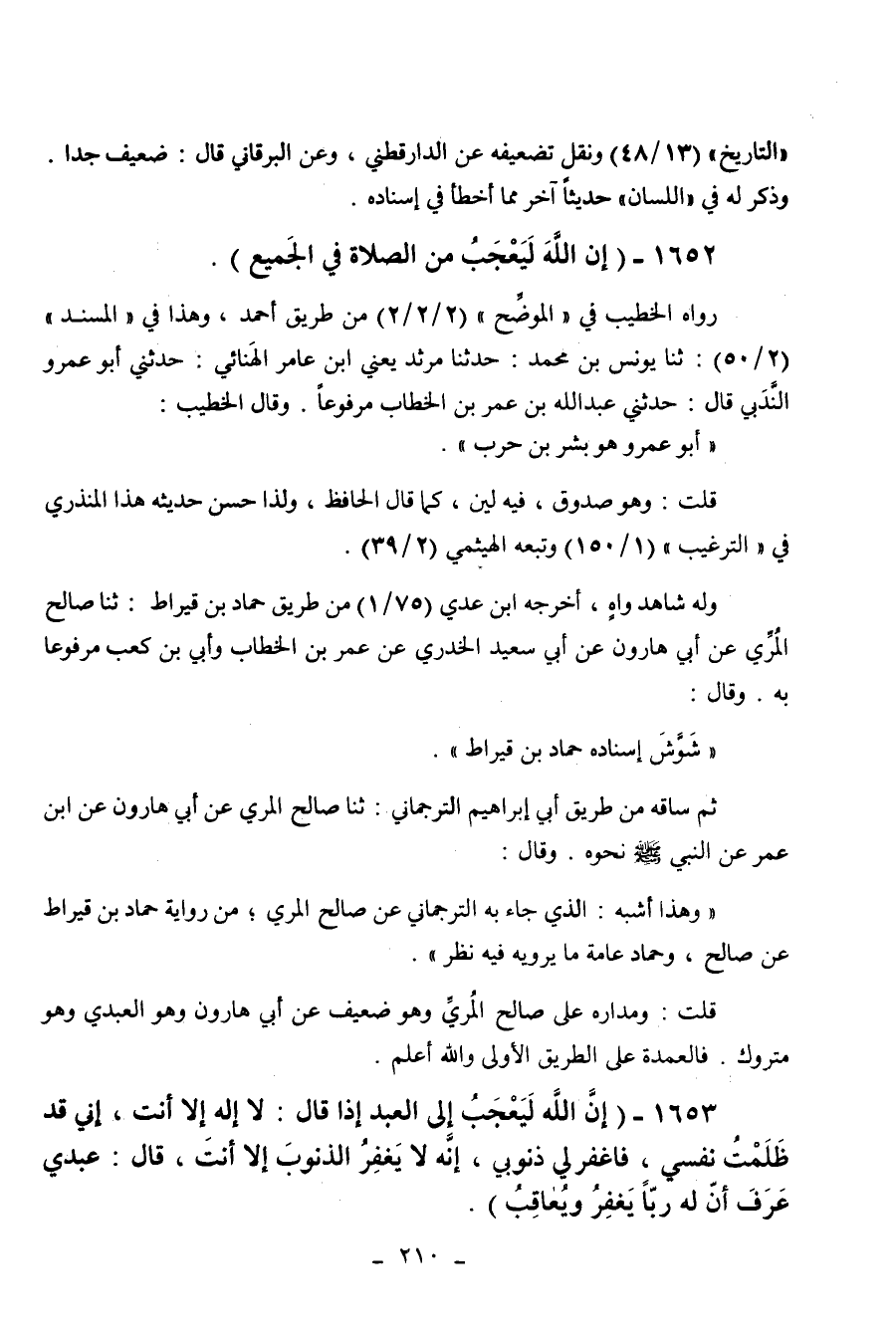 1653 - " إن الله ليعجب إلى العبد إذا قال: لا إله إلا أنت إني قد ظلمت نفسي، فاغفر