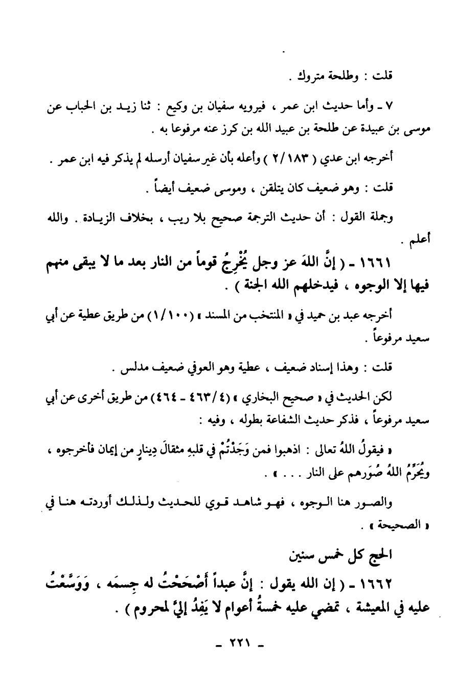 1661 - " إن الله عز وجل يخرج قوما من النار بعدما لا يبقى منهم فيها إلا الوجوه،
