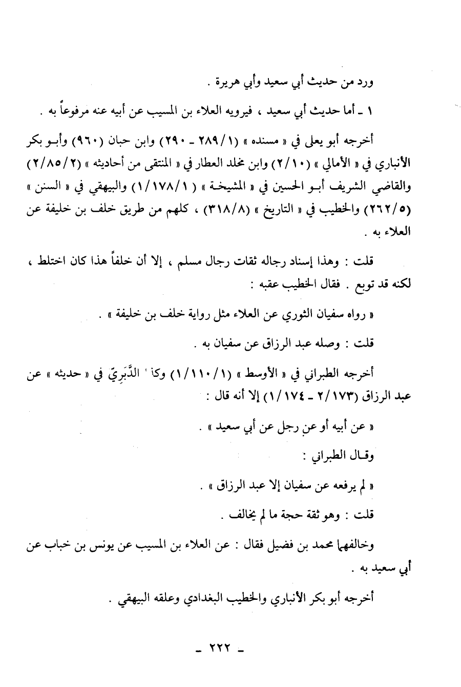 1 - أما حديث أبي سعيد فيرويه العلاء بن المسيب عن أبيه عنه مرفوعا به. أخرجه