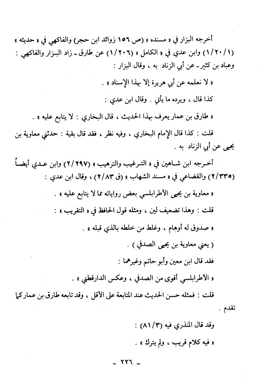 " حديثه " (1 / 20 / 1) وابن عدي في " الكامل " (206 / 1) عن طارق - زاد