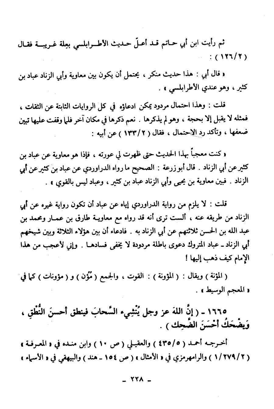 1665 - " إن الله عز وجل ينشئ السحاب فينطق أحسن النطق، ويضحك أحسن الضحك ".