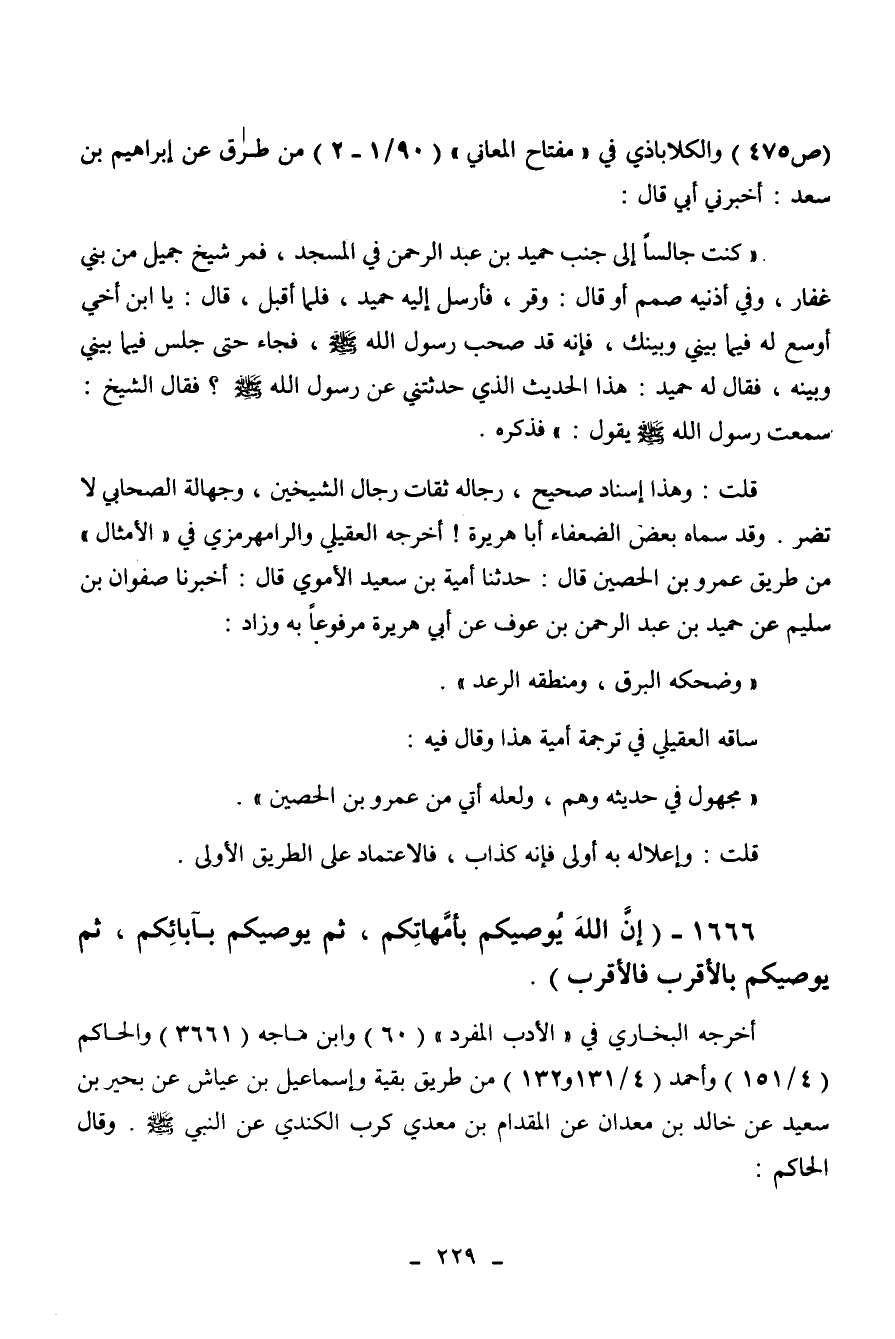 1666 - " إن الله يوصيكم بأمهاتكم، ثم يوصيكم بآبائكم، ثم يوصيكم بالأقرب فالأقرب ".