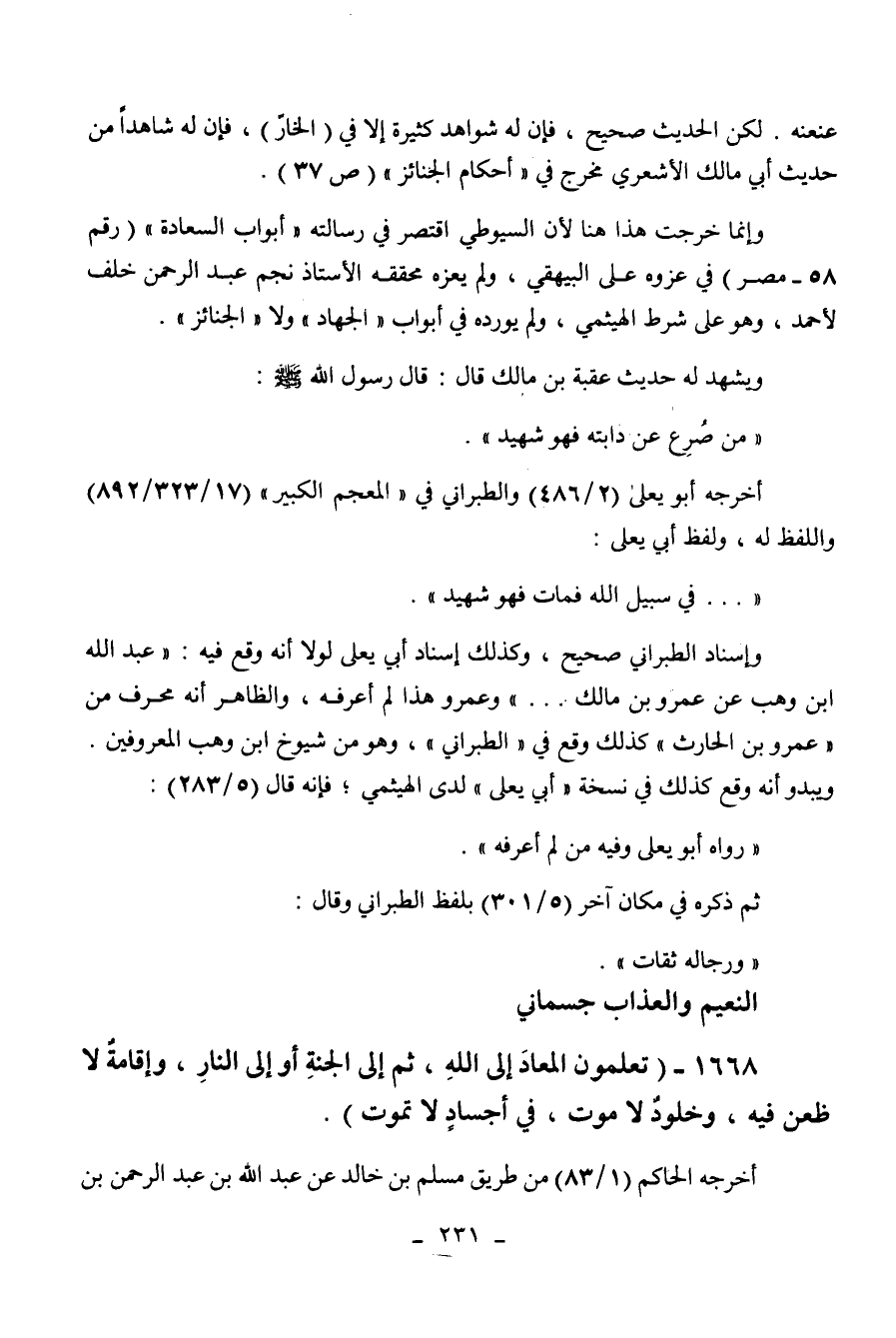 الهيثمي، ولم يورده في أبواب " الجهاد " ولا " الجنائز ". ويشهد له حديث