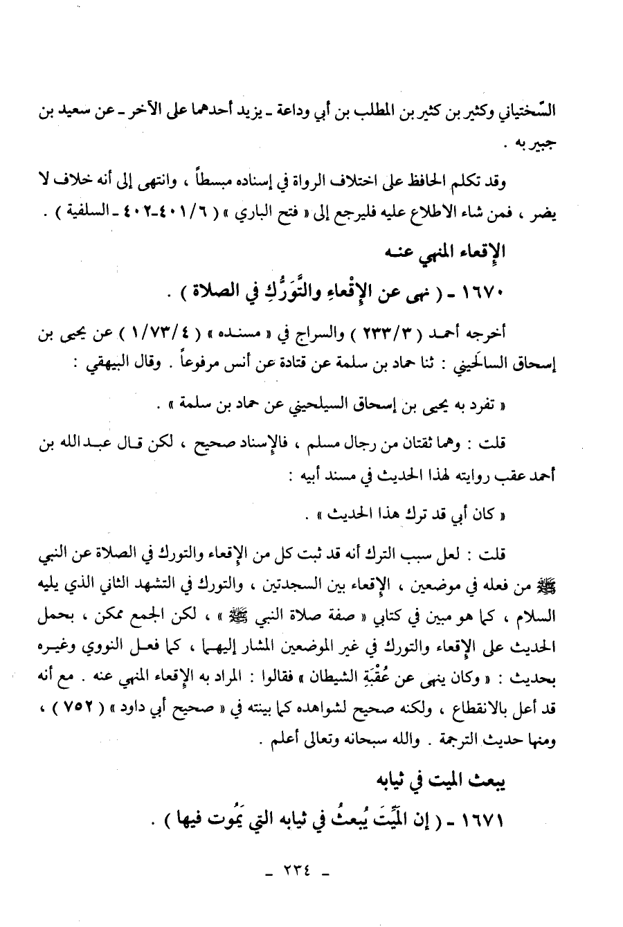 1670 - " نهى عن الإقعاء والتورك في الصلاة ".