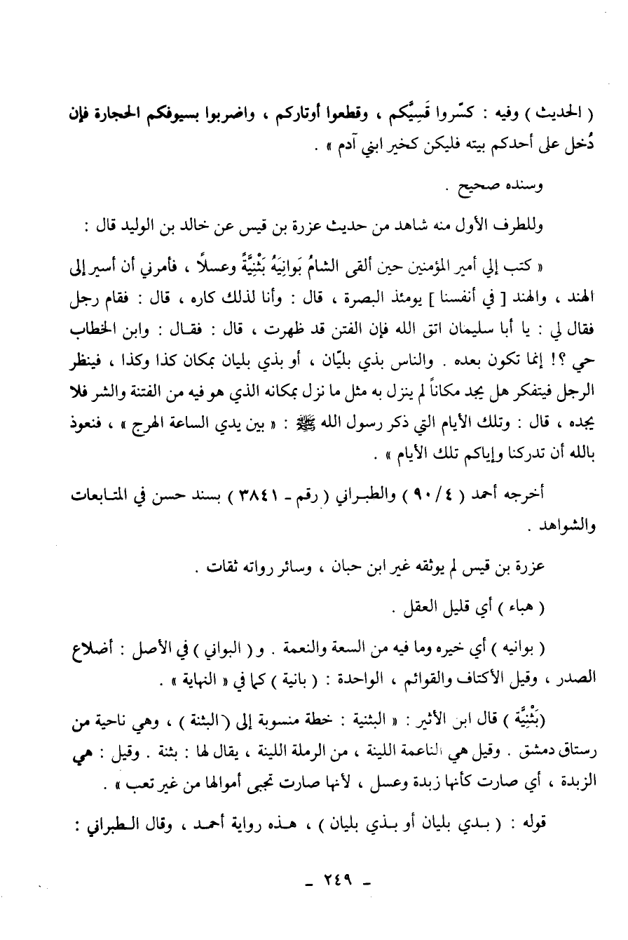 تدركنا وإياكم تلك الأيام ". أخرجه أحمد (4 / 90) والطبراني (رقم - 3841