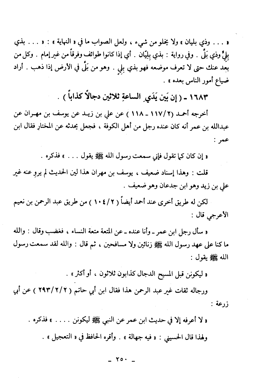 1683 - " إن بين يدي الساعة ثلاثين دجالا كذابا ".