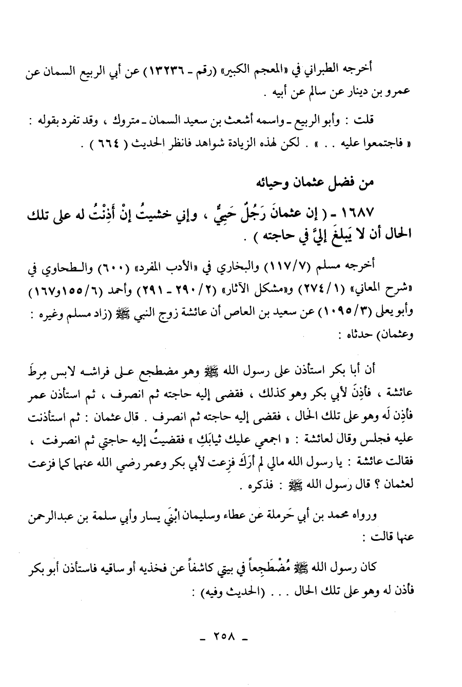 1687 - " إن عثمان رجل حيي وإني خشيت إن أذنت له على تلك الحال أن لا يبلغ إلي في