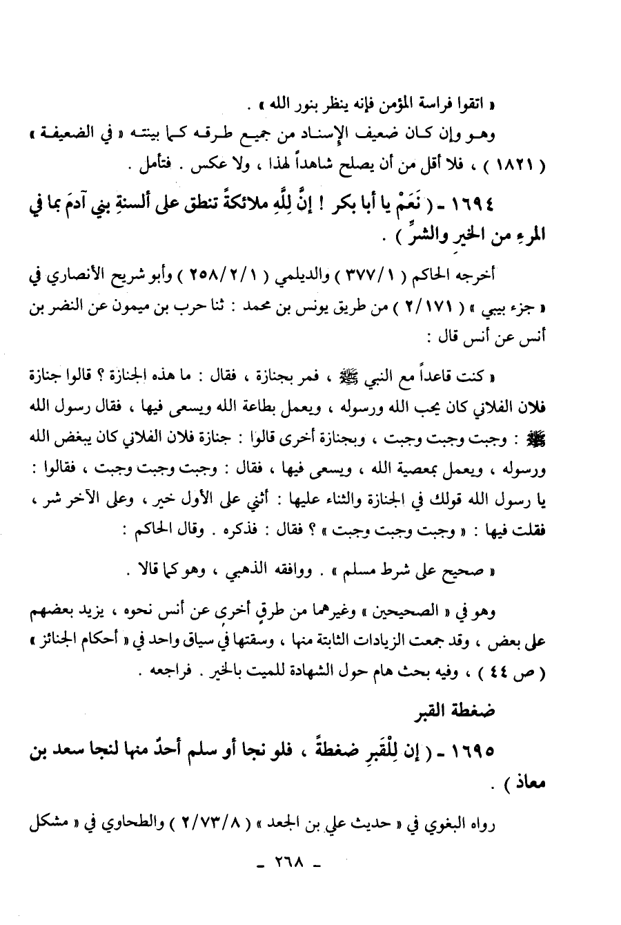 1695 - " إن للقبر ضغطة، فلو نجا أو سلم أحد منها لنجا سعد بن معاذ ".