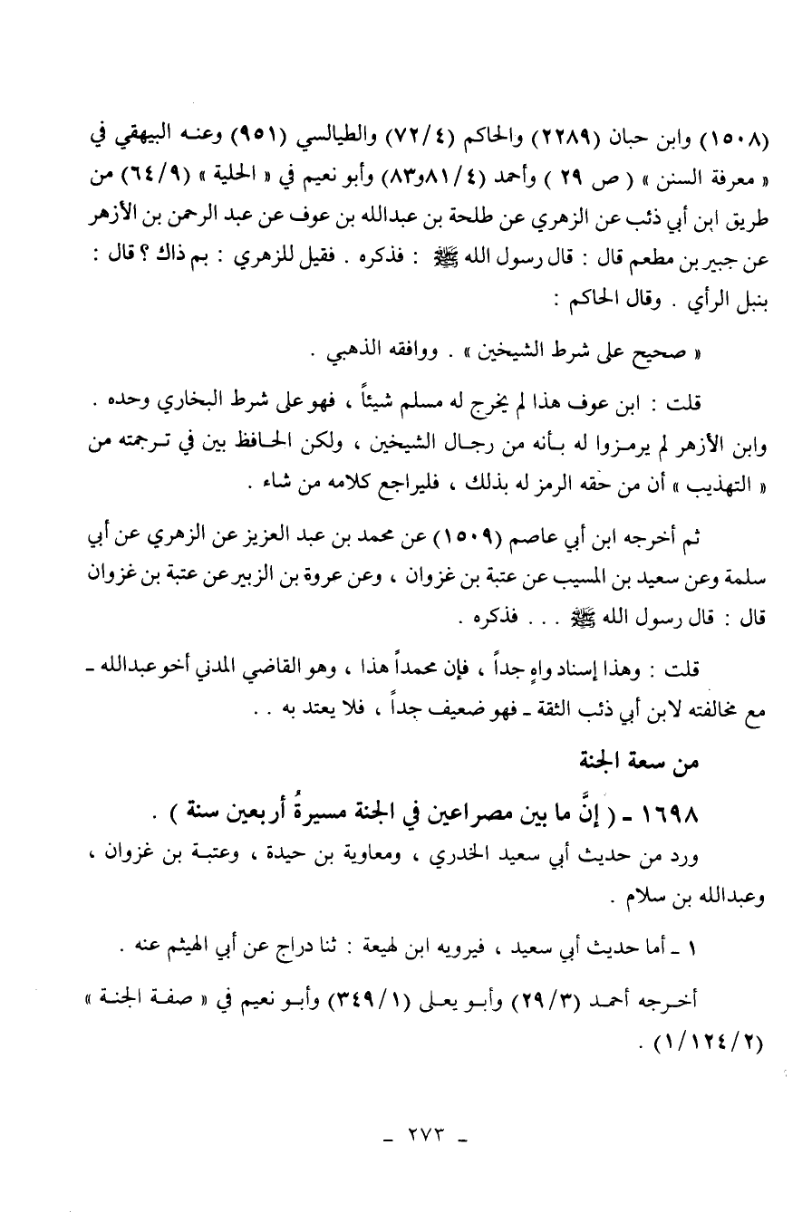 1698 - " إن ما بين مصراعين في الجنة مسيرة أربعين سنة ".