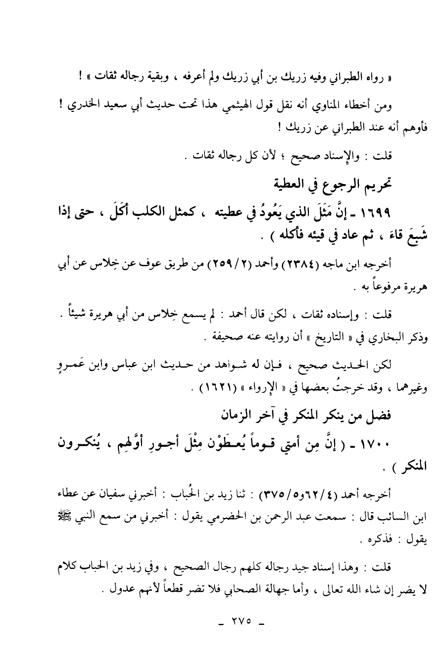 1699 - " إن مثل الذي يعود في عطيته كمثل الكلب أكل حتى إذا شبع قاء، ثم عاد في قيئه