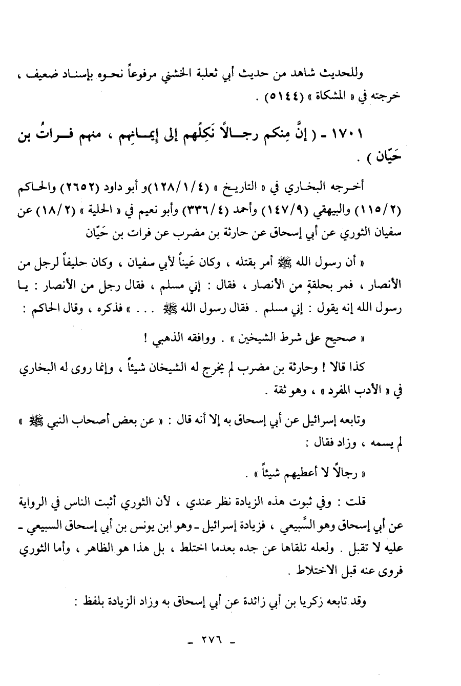 1701 - " إن منكم رجالا نكلهم إلى إيمانهم، منهم فرات بن حيان ".